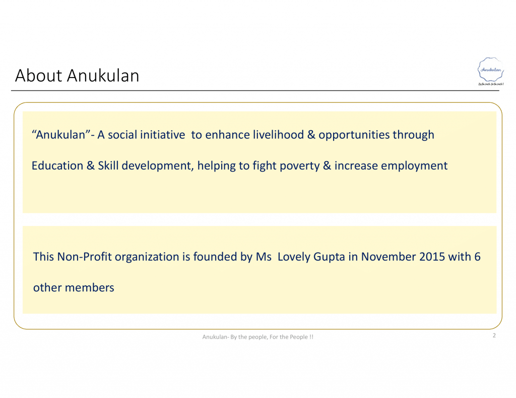 Journey of Anukulan started in November 2015 with a first batch of 15-20